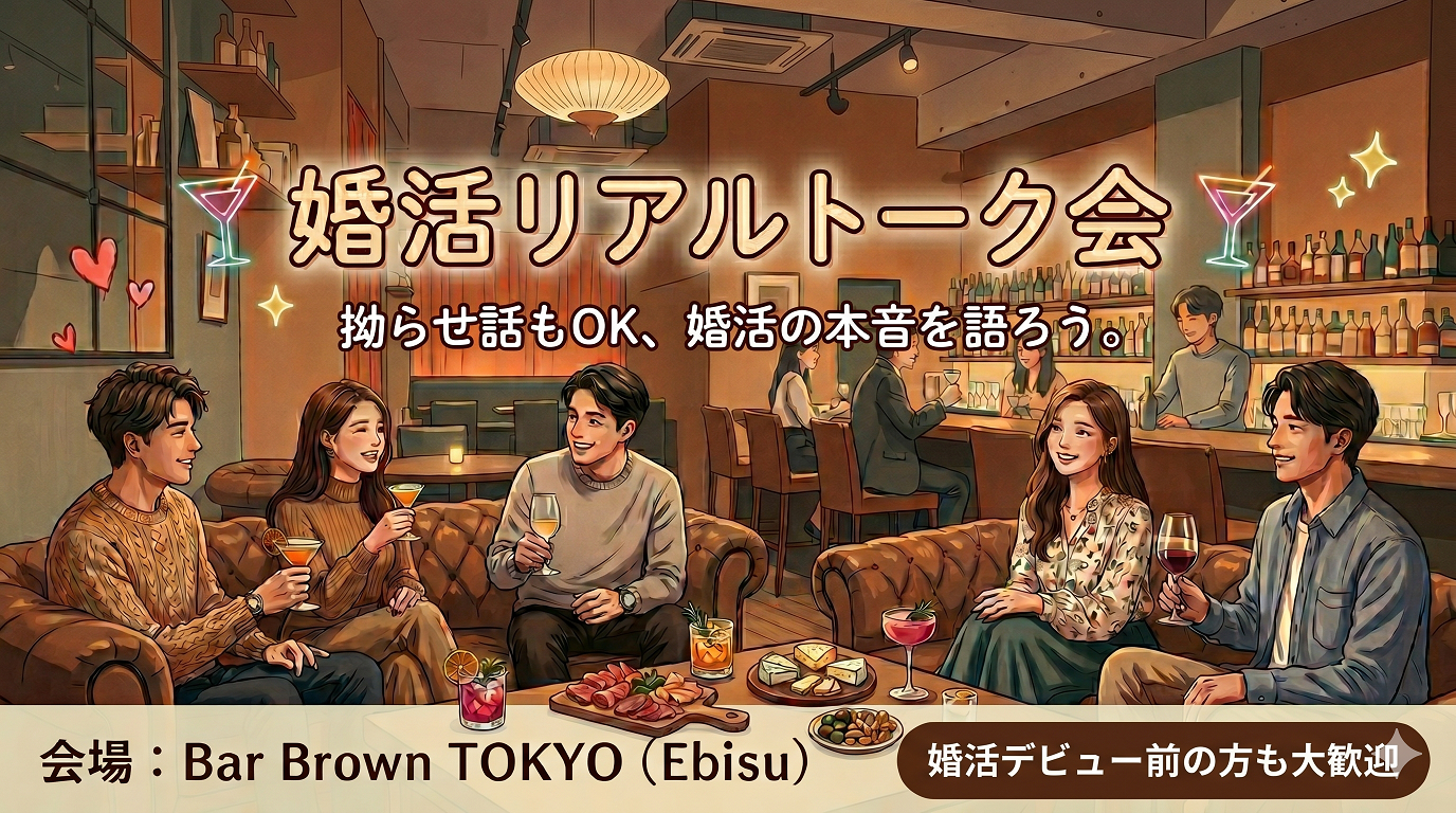 | イベント名 | 【そろそろ結婚したい!】恵比寿☆真剣男女の婚活PARTYスカイウォーク出口から徒歩3分「Bar Brown TOKYO」貸切!飲み放題&料理付き! |